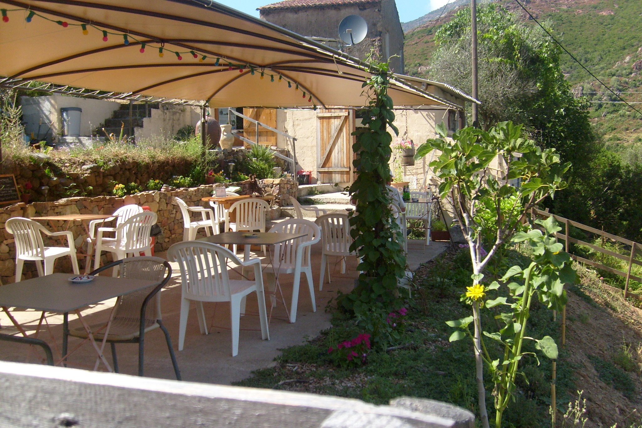 Le bar / restaurant A Muvrella qui possède une vue panoramique, vous propose ses plats corse, salades, paninis, glaces et autres desserts maisons.
