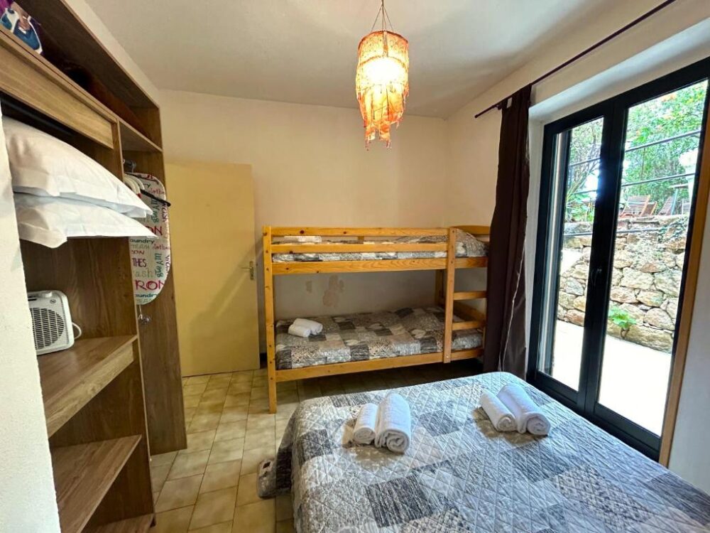 - Chambre Quadruple — 1 grand lit double + 2 lits superposés, salle de bain avec douche, toilettes séparés.